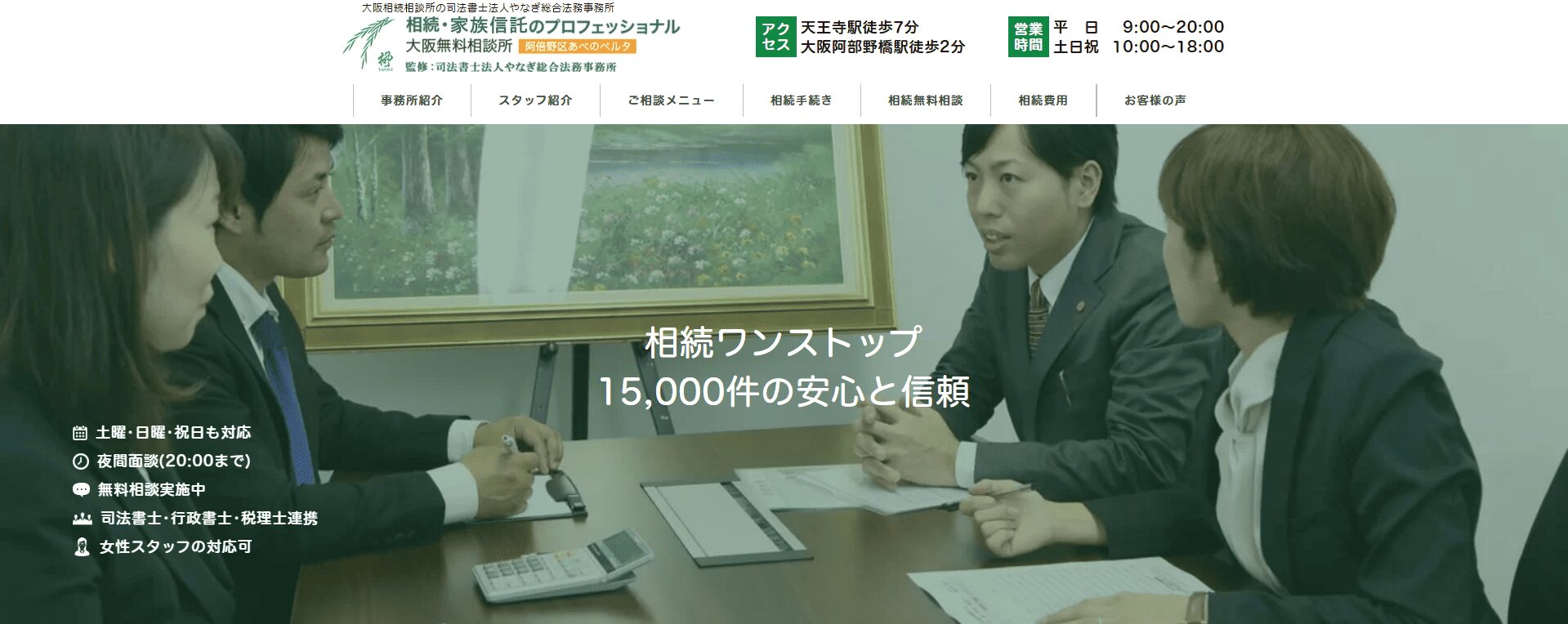 相続のプロが30名以上も所属し、徹底的にサポートしてくれるのが、大阪相続相談所です。OsakaMetro御堂筋線淀屋橋駅から徒歩2分と便利な立地にあり、オンライン相談で全国からの依頼にも対応できます。相続や遺言書など家族信託に関して幅広く相...